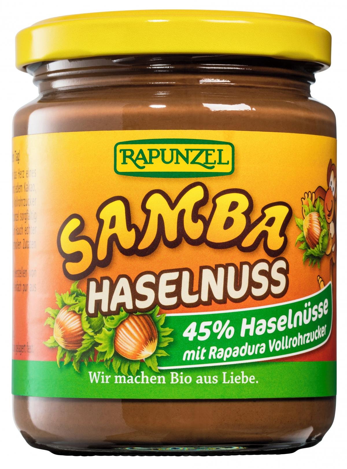 Starten Sie mit Samba schwungvoll in den Tag! 45 % aromatisch geröstete Haselnüsse lassen das Herz eines jeden Nuss-Fans höher schlagen. Zusammen mit edlem Kakao, Allgäuer Vollmilch und wertvollem Rapadura Vollrohrzucker werden sie zum zart schmelzenden Samba verarbeitet. Ein Hauch echter Bourbon Vanille rundet den Geschmack der wertvollen Zutaten ab. Rapadura Vollrohrzucker, Cristallino Rohrzucker, Palmöl und Kakaopulver sind fair gehandelt und stammen von unseren HAND IN HAND-Partnern. Die Konsistenz ist temperaturabhängig. Bei Zimmertemperatur cremig, im Kühlschrank gelagert fest.