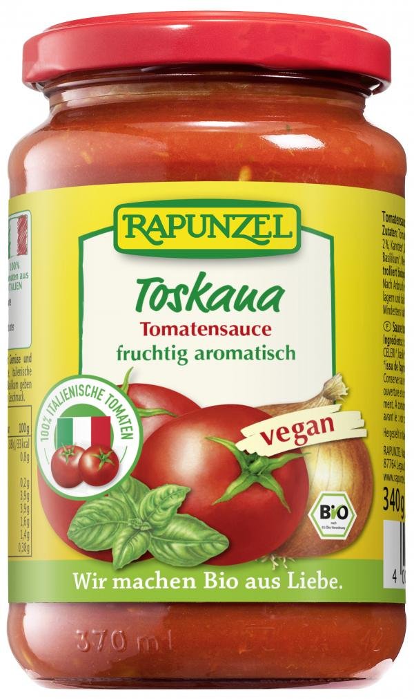 Fruchtig milde Tomatensauce mit feinem Gemüse und frischem Basilikum. Die in dieser Tomatensauce enthaltenen Tomaten sind zu 100% aus Italien. Rapunzel unterstützt die Züchtung und den Erhalt von samenfestem Bio-Saatgut, z.B. auch für die Tomatensorte 'Mauro Rosso'.