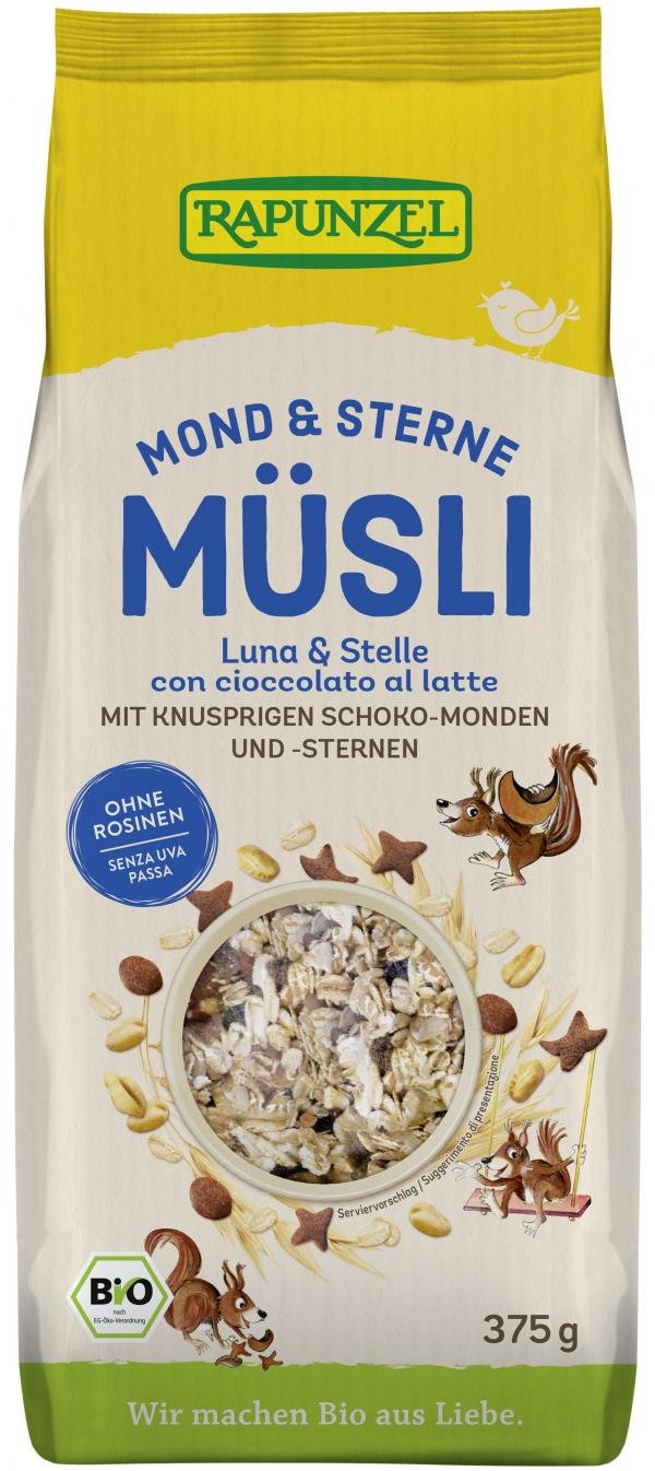 Der knusprig schokoladige Frühstücks-Spaß - nicht nur für Kinder! Knusperleichte Schoko-Monde & Schoko-Sterne, zarte Schokoladenraspeln, vollwertige Getreideflocken, leckere Vollkornflakes und -Poppies sorgen für Genuss am Morgen.