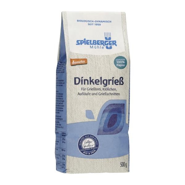 Für den Dinkelgrieß wird bester demeter-Dinkel verwendet. In der Spielberger Mühle wird das Getreide vermahlen und dabei mit größter Sorgfalt und Fingerspitzengefühl der Grieß abgesiebt. Der Dinkelgrieß ist ein vollwertiges Produkt, da er Teile der wertvollen Schale und des Keimlings enthält. Damit enthält er noch viele wertvolle Bestandteile des vollen Korns. Dinkel schmeckt fein nussig. Mit dem Beginn der Biobewegung wurde Dinkel als unverfälschtes Urgetreide wiederentdeckt. Bis zum Mittelalter galt er als das wichtigste Brotgetreide. Erst mit der Intensivierung der Landwirtschaft und dem verstärkten Einsatz von Kunstdünger geriet das Getreide in Vergessenheit. Das hatte einen ganz einfachen Grund: Dinkel reagiert – anders als Weizen – auf die Gabe von Stickstoffdünger kaum mit einer Erhöhung des Ertrags. Im Bioanbau werden dagegen die positiven Eigenschaften des Getreides geschätzt. Neben dem fein nussigen Geschmack und der besseren Verträglichkeit, zeichnet sich Dinkel dadurch aus, dass er auch in niederschlagsreicheren Gebieten und höheren Lagen gut gedeiht. Der Dinkelgrieß eignet sich besonders für Grießbrei. Klößchen, Aufläufe und Grießschnitten.