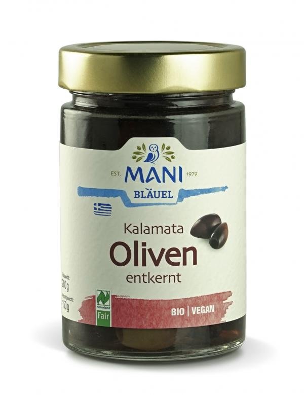 Mani Bläuel Oliven werden schonend geerntet und auf natürliche Weise, ohne die Zugabe von Konservierungsstoffen, entbittert.
