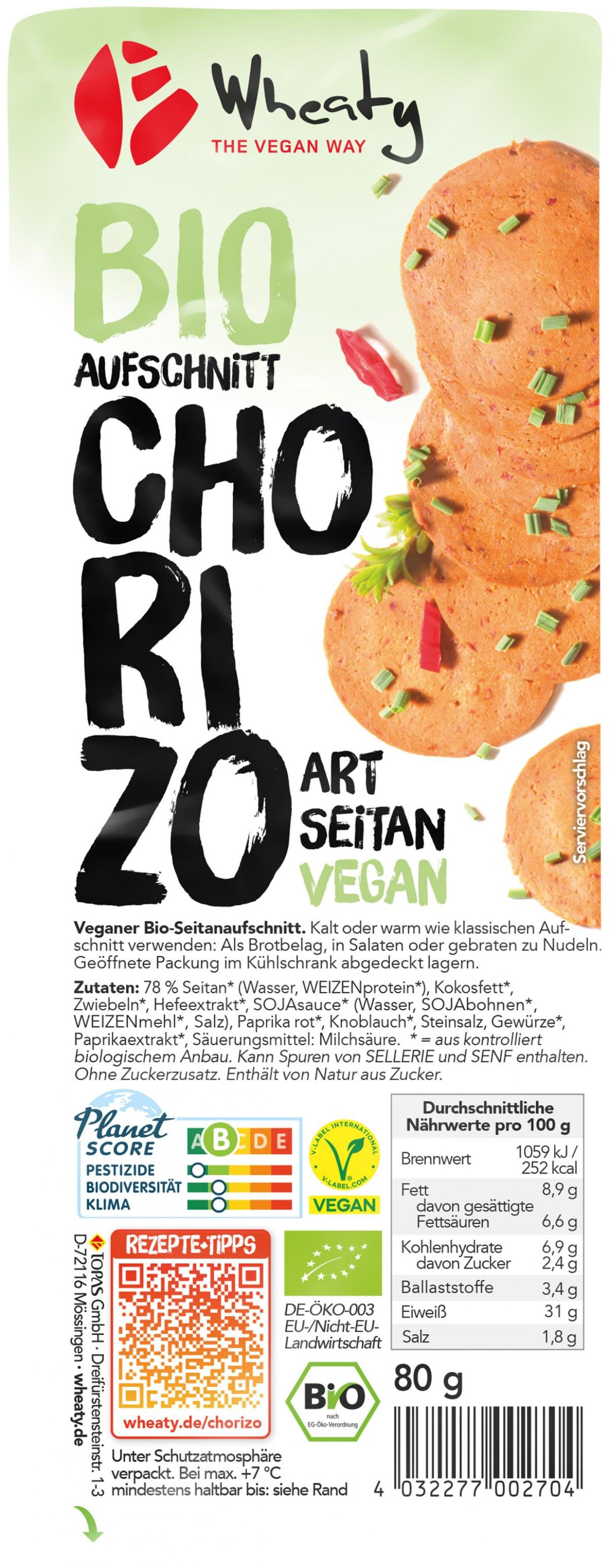 Der Wheaty Chorizo-Aufschnitt schmeckt unverwechselbar spanisch. Sein typischer, würzig-feuriger Paprika-Geschmack macht jede Scheibe zu einem Genuss, wie man ihn in der Masse der vegetarischen und veganen Angebote nicht jeden Tag findet. Unsere Chorizo-Reihe wurde im Lauf der Jahre dafür mit mehreren Preisen ausgezeichnet.