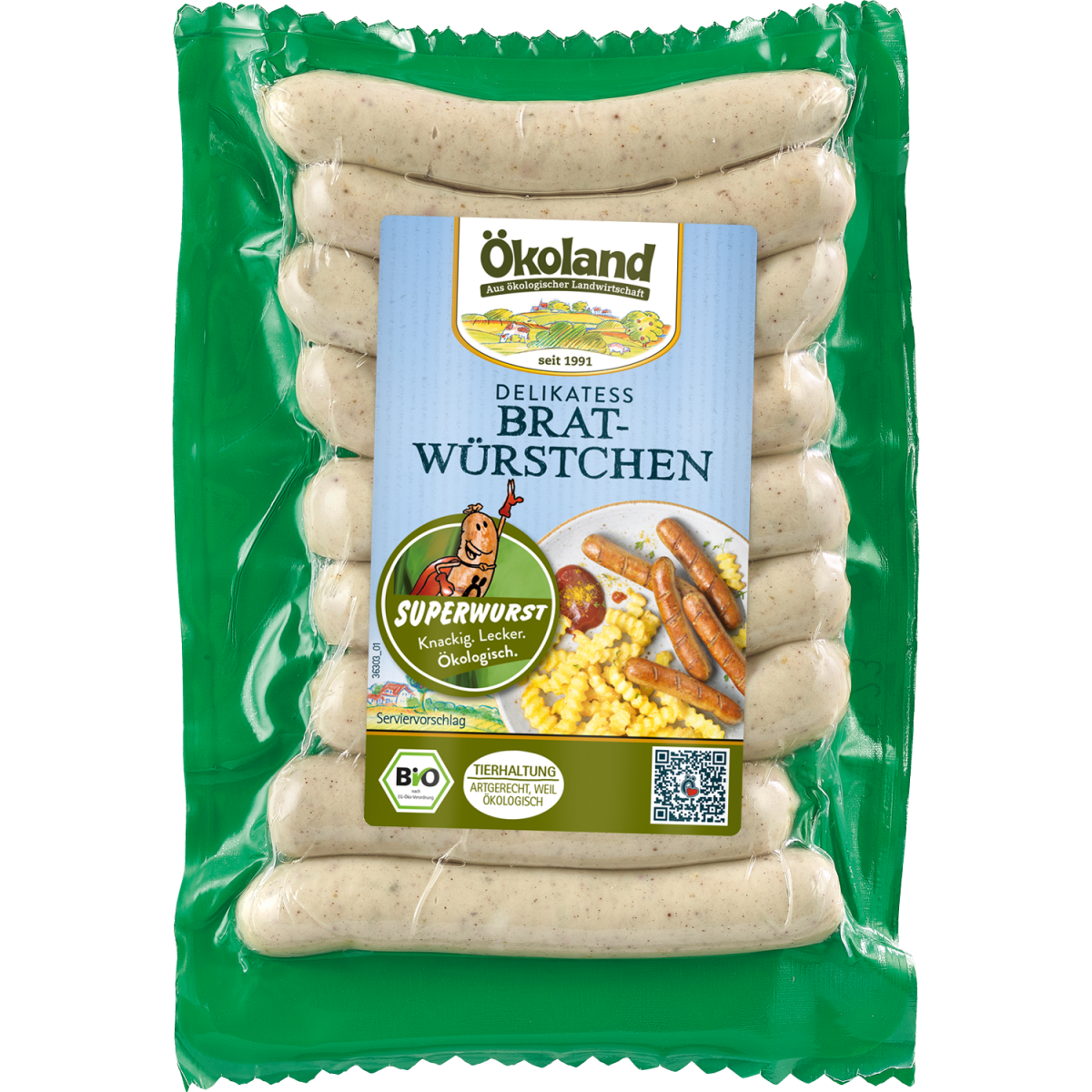 Heiße Leckereien: die Ökoland-Bratwürstchen werden aus bestem Bio-Schweinefleisch hergestellt. Die feine Rezeptur aus Gewürzen und Kräutern sorgt für den hervorragenden Geschmack. SUPERWURST - knackig, lecker, ökologisch.